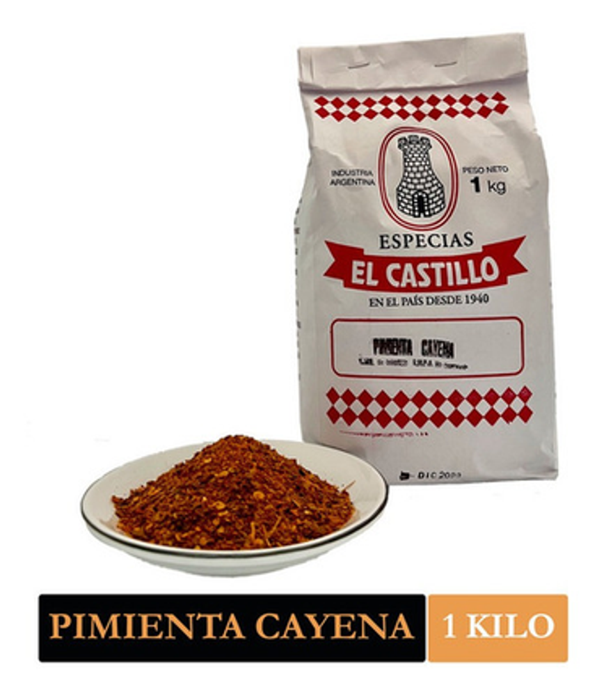 Nuestra Pimienta Cayena molida es original Pimenta de la Guyana Francesa, ideal para la preparacion de Tacos, Fajitas y Comida Mexicana en general. Se presenta triturada en un envase de UN KILO.