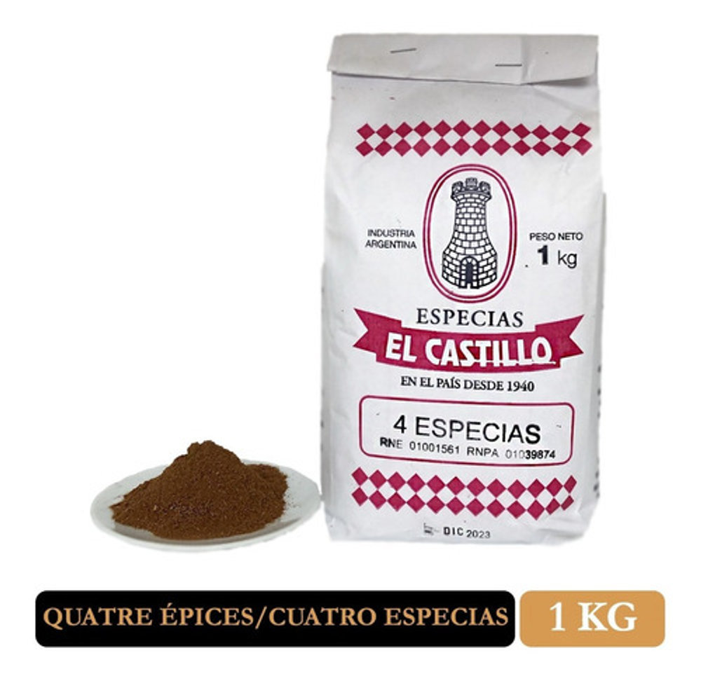 Un pilar de la cocina Francesa. Un exquisito blend, ideal para sopas, verduras y estofados. Este Blend contiene Pimienta Blanca, Canela, Clavo de Olor y Nuez Moscada. Este Blend viene presentado en un paquete de UN KILO.