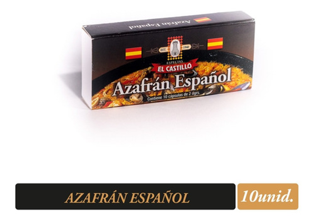Azafrán Español Molido “EL CASTILLO” 10 Cápsulas de 2 Dg. Venta mínima 10 cápsulas