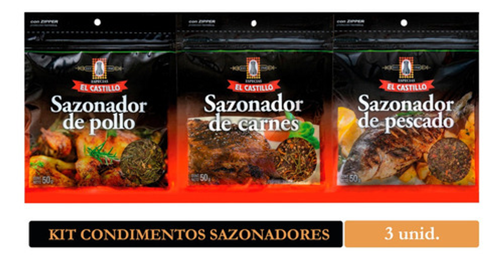 Nuestro Kit de Condimentos Sazonadores es esencial para condimentar carnes, pollo y pescado. Ideal para la realización de asados y marinadas. Contiene: