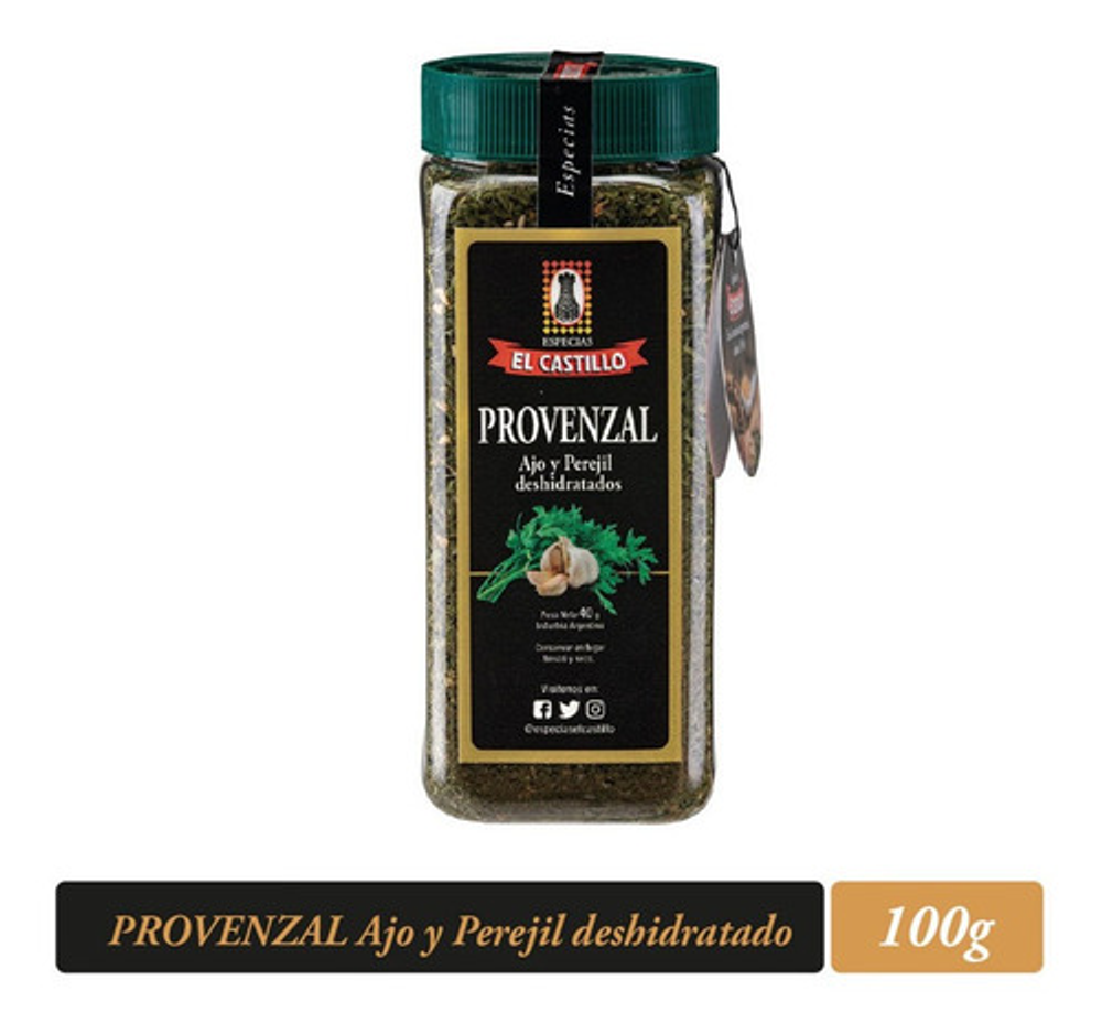Nuestra Provenzal (Perejil y Ajos deshidratdos) estan perféctamente balanceados para asegurarnos el tradicional sabor que acompañan nuestros platos. Hidratar previamente a su uso.