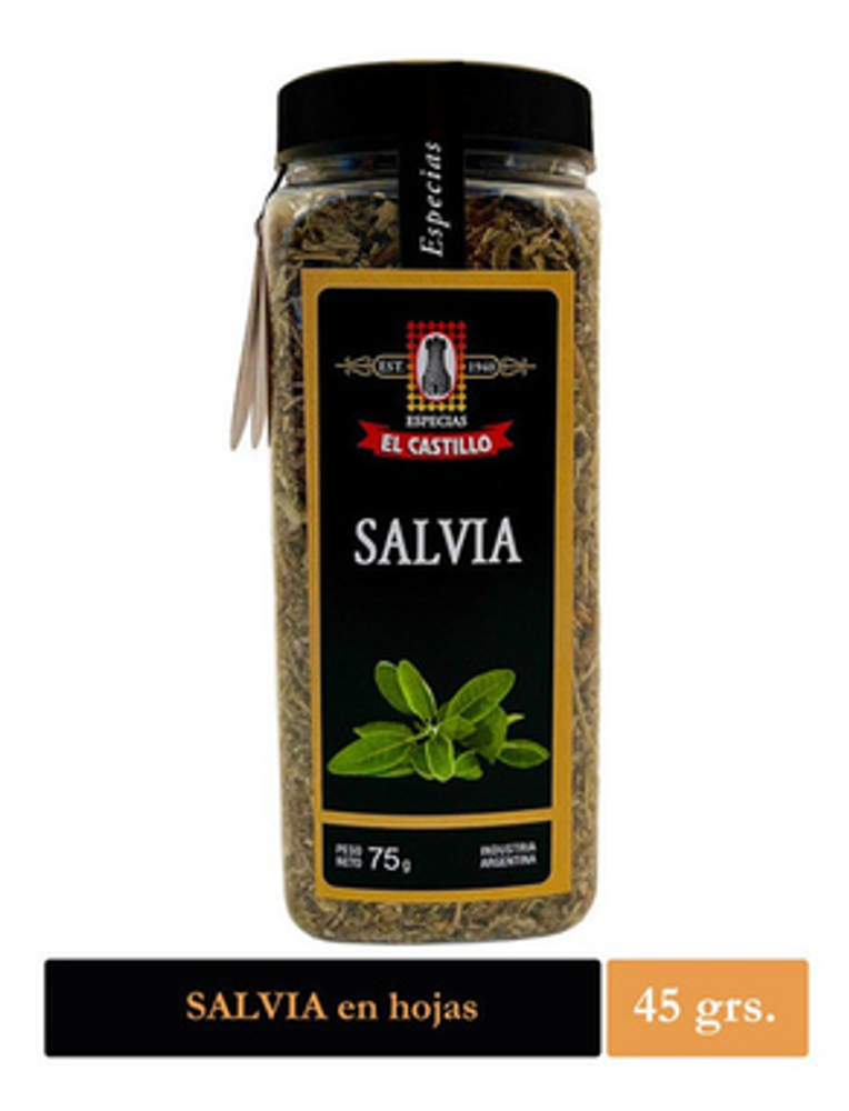 Nuestra Salvia viene presentada en un práctico envase alto PET donde asegura hermeticidad y frescura, al igual que conserva los sabores al máximo. Ideal para adobar la carne de cerdo, como tambien para preparar junto con la calabaza, para ensaldas y pastas. Exquisita mezclandola con manteca.