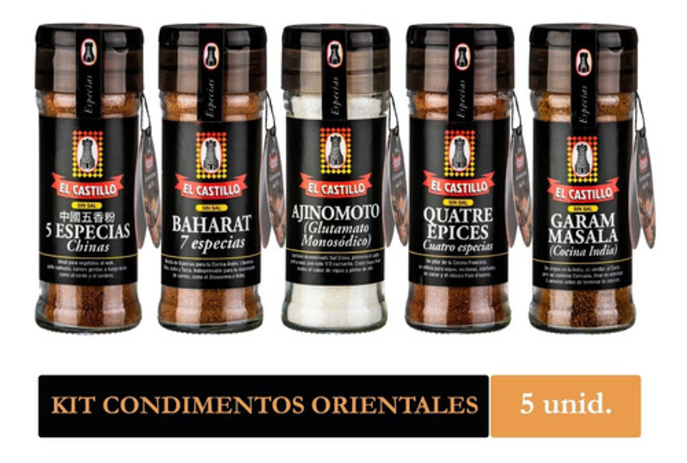 Nuestro Kit de Condimentos Orientales es ideal para la preparación de comidas Hindúes y Asiáticas. También es utilizado en la cocción de Cordero, Shawarma, Vegetales, Carnes, Sopas y mucho más! Contiene: