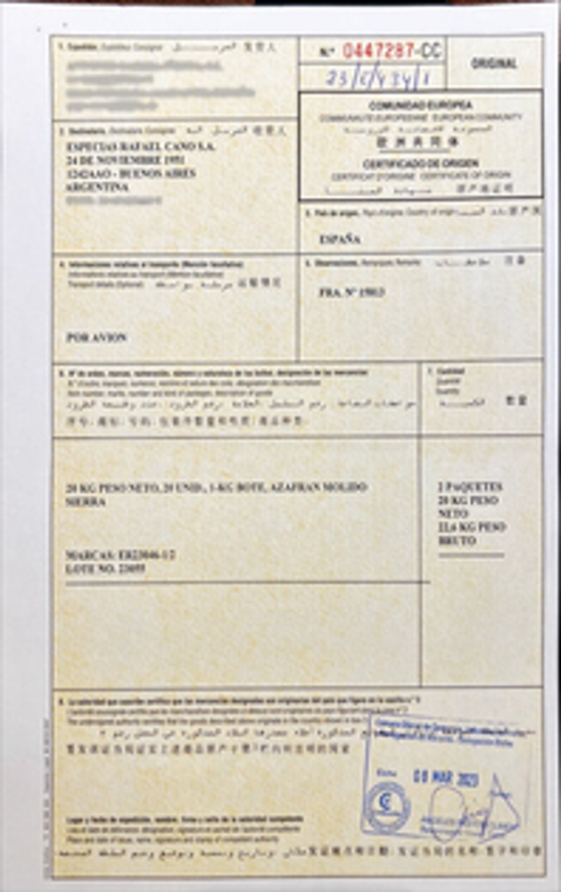 Nombre de la especia: AZAFRAN ESPAÑOL
