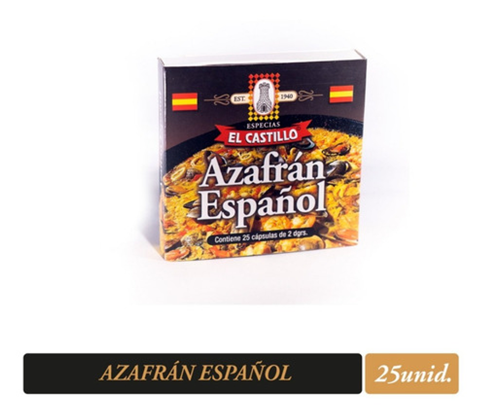 Azafrán Español Molido “EL CASTILLO” 25 Cápsulas de 2 Dg.