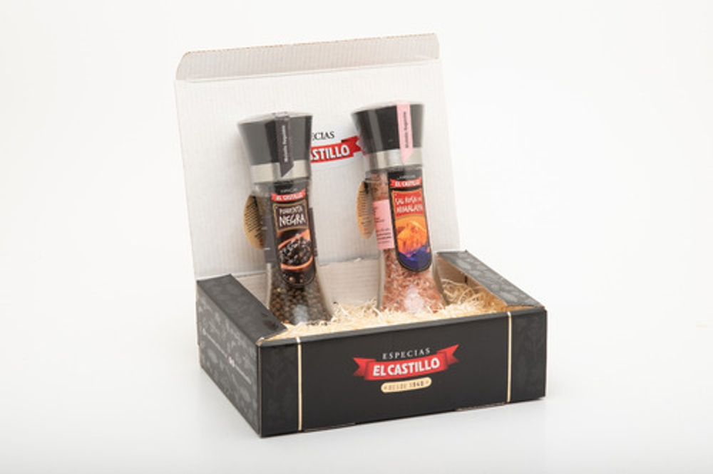 Nuestro estuche contiene un Molinillo Alto de Sal del Himalaya de 240 grs proveniente de Khewra - Jhelum, en las montañas de Pakistán, + un Molinillo de Pimienta en grano A ELECCIÓN. Las variantes disponibles son: