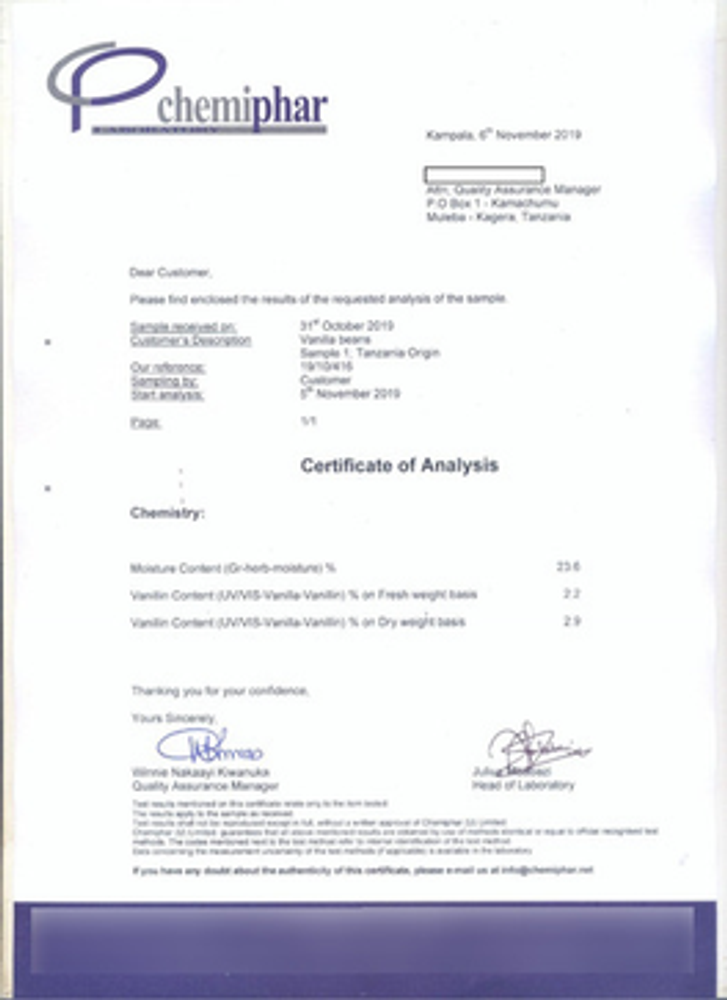 La Vainilla de Tanzania tiene mundialmente uno de los niveles más altos, sino el que más, de contenido de Vanillin.