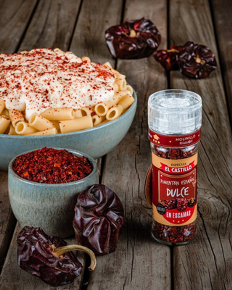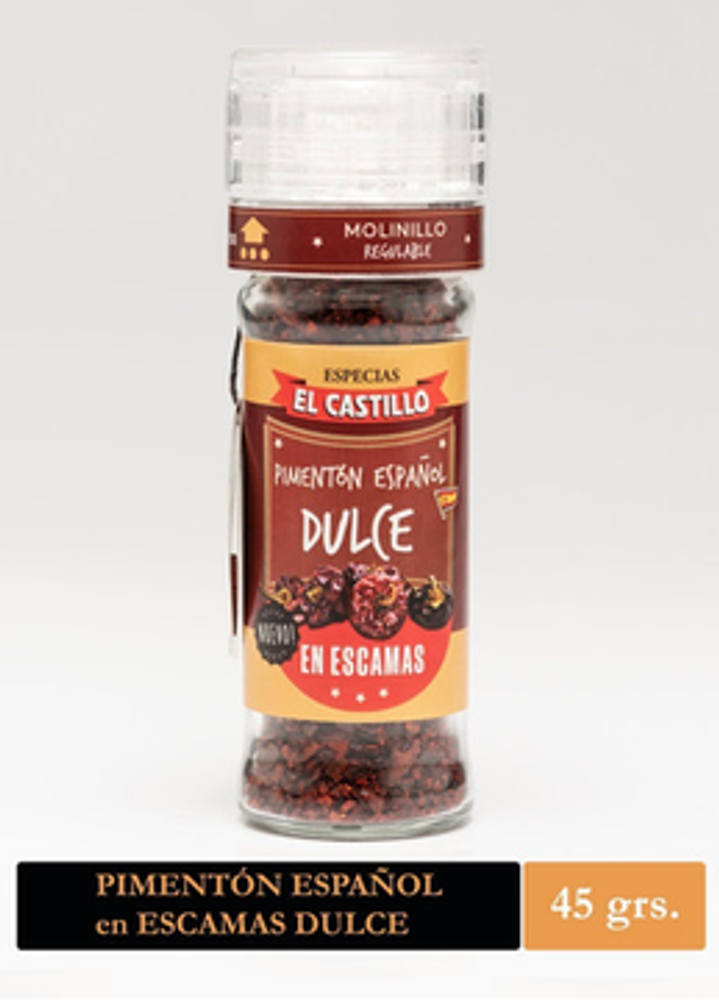 Nuestro Nuevo Molinillo de Pimentón Español Dulce en Escamas es cosechado y secado al sol en Murcia - España. Se le hace un leve triturado y, luego, es importado para ser envasado en nuestra plante de Argentina. Este proceso lo venimos haciendo con varios de nuestros productos desde hace 80 años. Su aroma, sabor y presencia es único e inconfundible. Además, hemos incorporado los Molinillos de Pimentón Español Picante y Ahumado en Escamas.